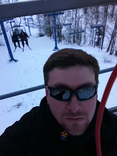 Once we were on the lift it was a bit easier to get a picture. Here's all three of us bundled up.